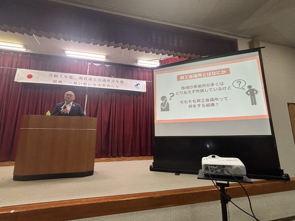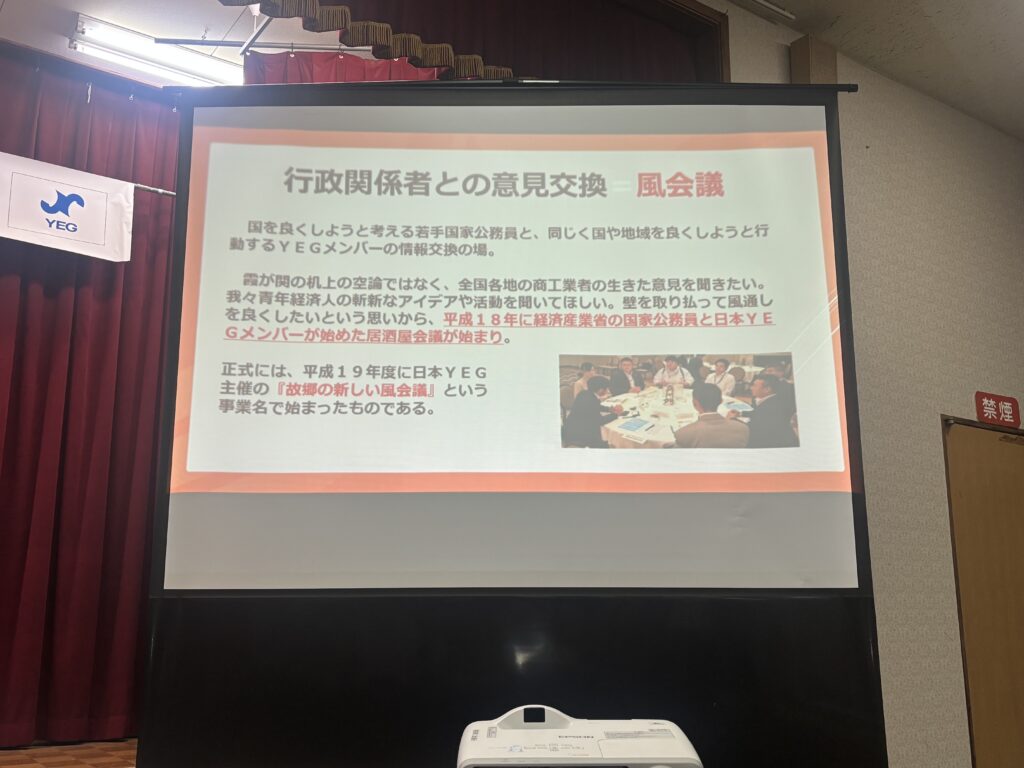 今回の「委員会タイム」は創成委員会が担当し、朝倉YEGのOBである平田輝先輩にご講演いただきました。青年部時代の貴重なご経験や、風会議に込められた想いなど、心に響くお話を伺うことができました。